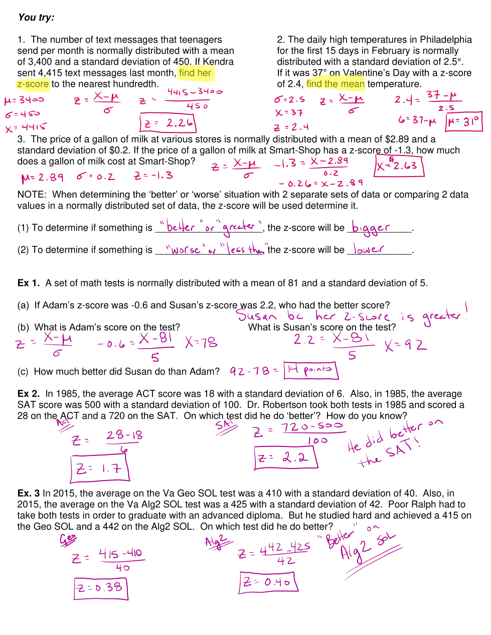 The last math exam of the year was normally distributed with a mean of 85 and a standard deviation of 5. Joan needed at least a 95 on this test to get an A for the year. Her teacher gave him his z-score: 1.8.