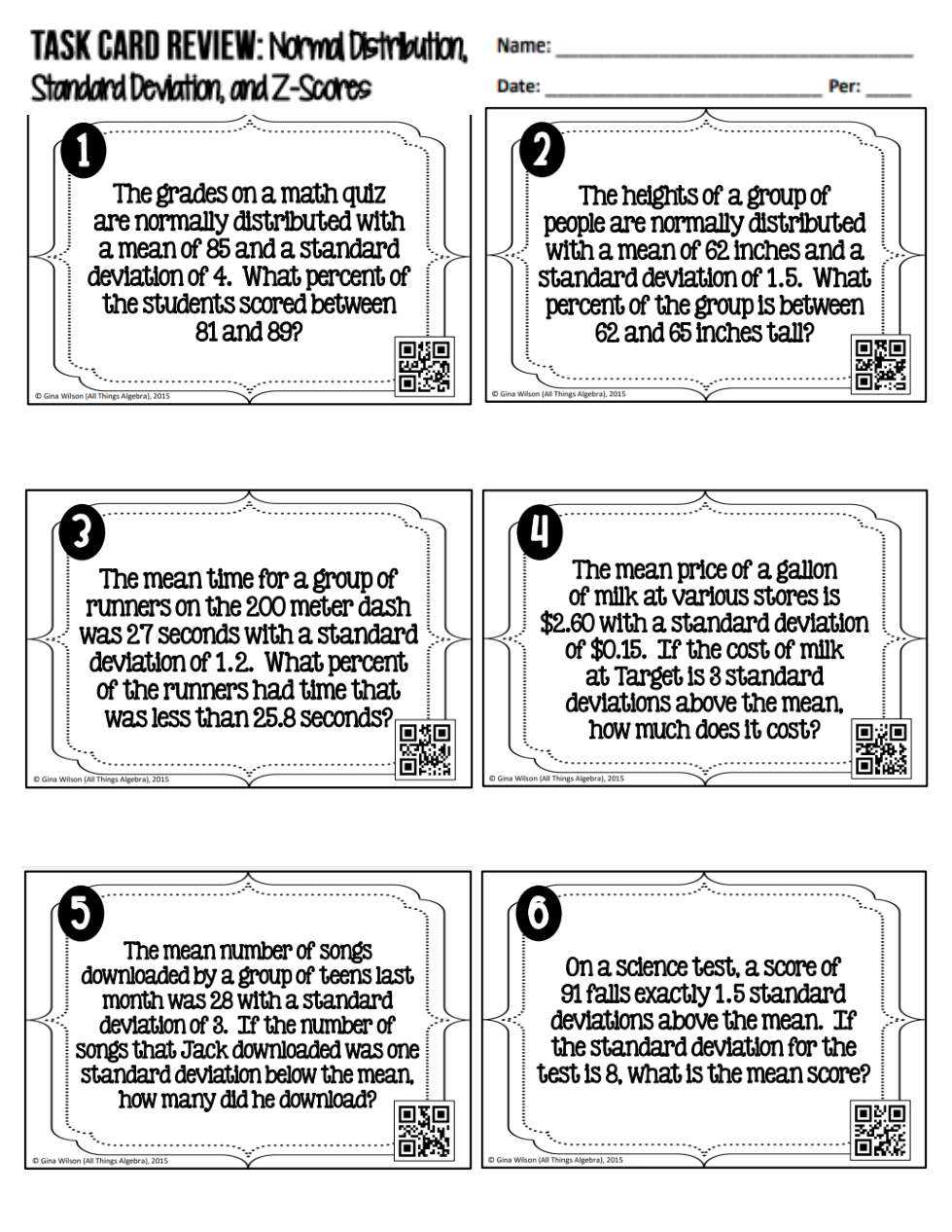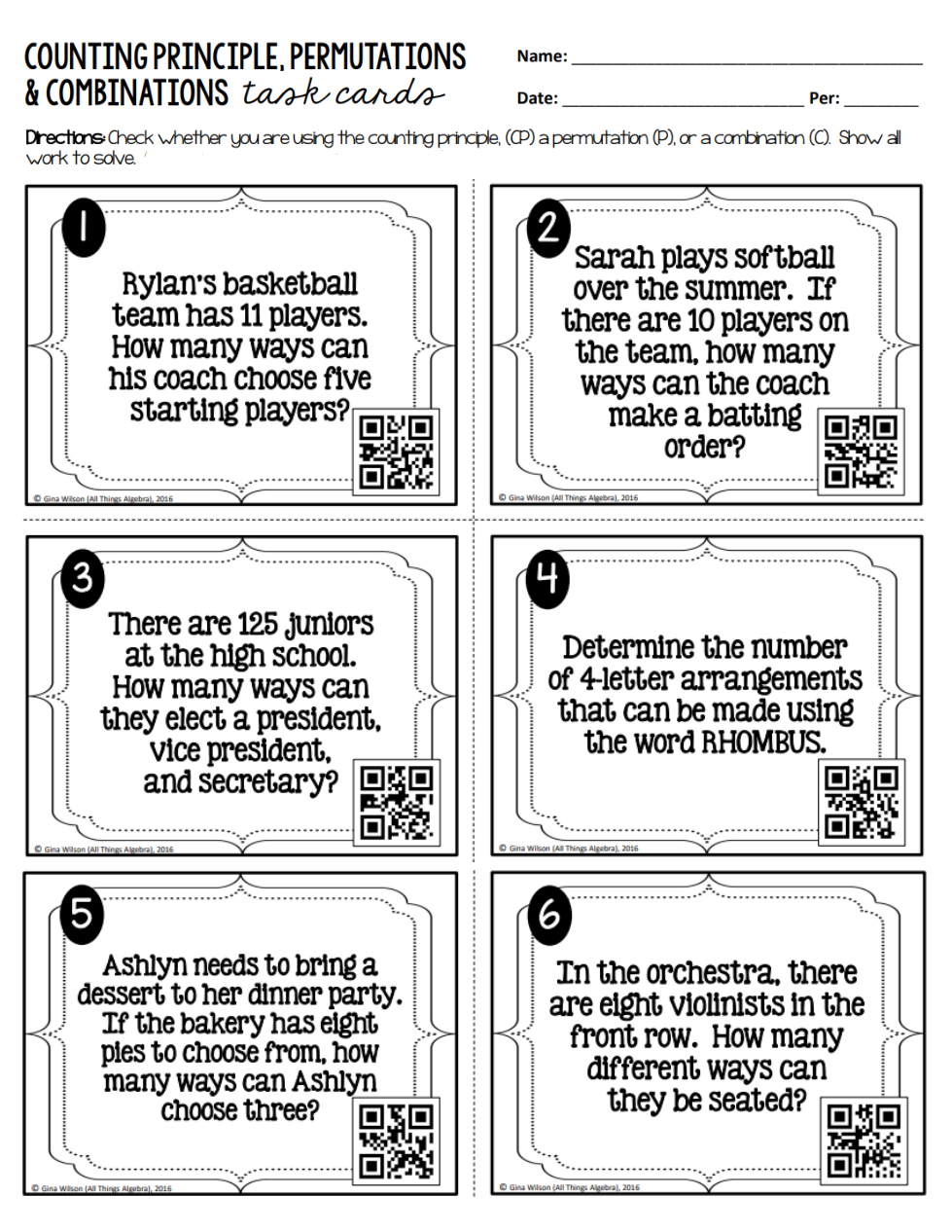 Complete the assignment....use the answer sheet to do your work. Check your answers with the QR codes.