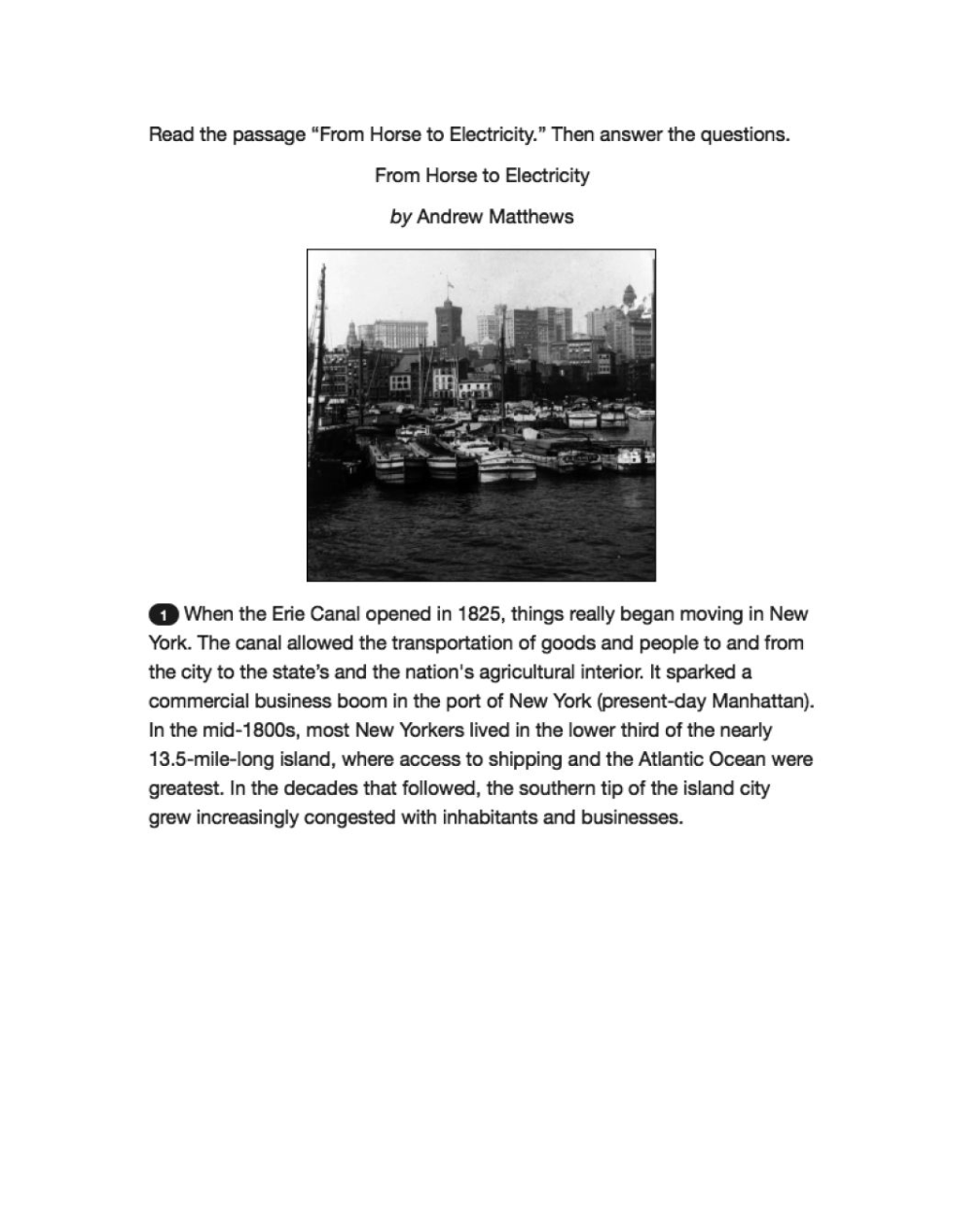 Read the Passage "From Horse to Electricity." Then answer the questions.