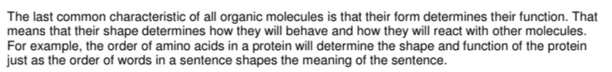 The ____ determines how organic molecules will look and behave.