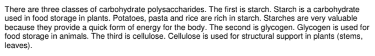 Which class of carbohydrates is used for structural support in plants?