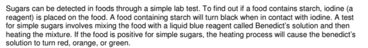 What reagent is added to see if food contains simple sugars?