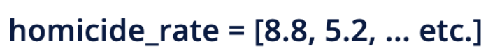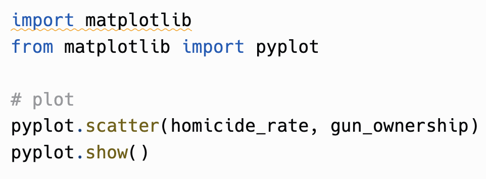 Use the data below to create two lists in Python: one called gun_ownership, and the other called homicide_rate.