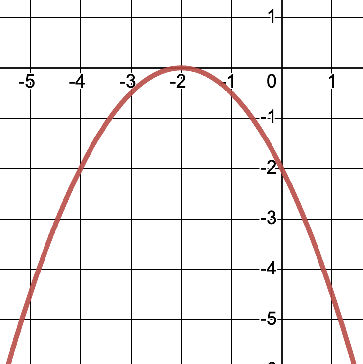 Has an axis of symmetery of x = -2 and one solution which is also the vertex. | arrow_right_alt | |
