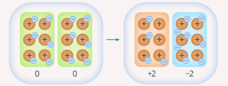 Открытие Томсоном электрона наконец дало ученым понять, что при электризации никакая электрическая жидкость не сообщается телу и никакой заряд не наносится извне. Происходит перераспределение электронов, как мельчайших носителей отрицательного заряда. В области, куда они приходят, их количество становится большим, чем количество положительных протонов. Таким образом, появляется нескомпенсированный отрицательный заряд. И наоборот, в области, откуда они уходят, появляется нехватка отрицательных зарядов, необходимых для компенсации положительных. Таким образом, область заряжается положительно.