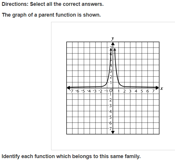 More than one function should be selected below. Type them into desmos to see which 2 look the most like the parent function given.