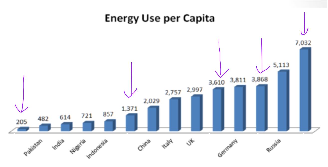According to the map, how is the use of energy resources distributed between developed and developing countries?