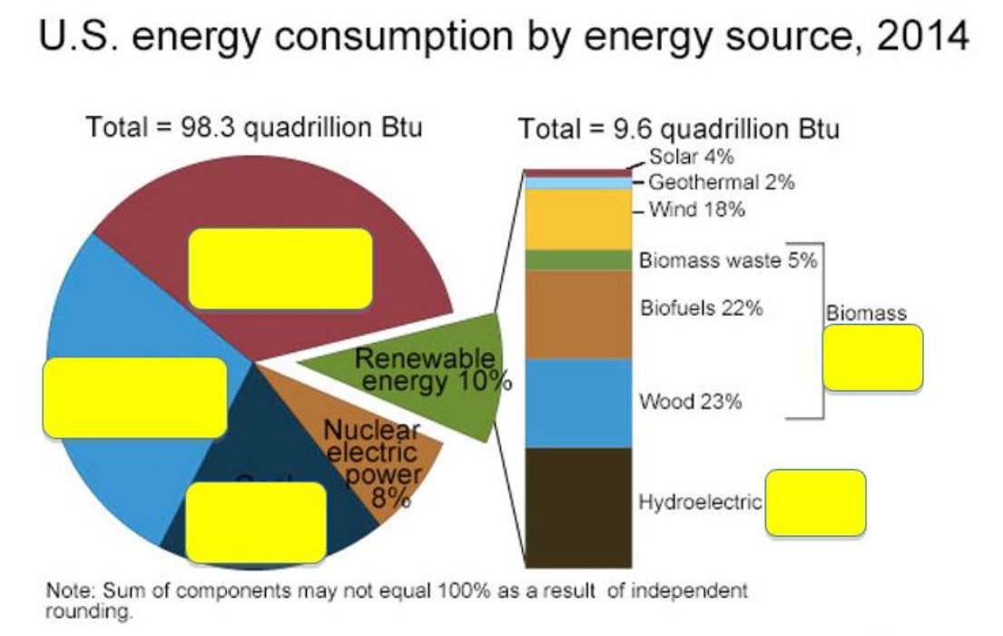 Complete the chart (yellow boxes) with percentage of US energy consumption.