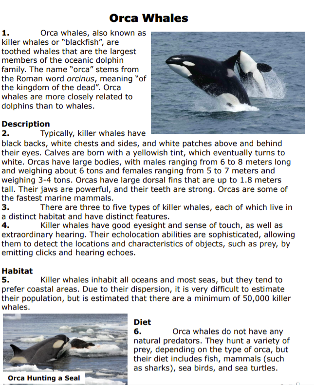 Which of the following best supports the idea that "There are three to five types of killer whales, each of which lives in a distinct habitat and have distinct features?"