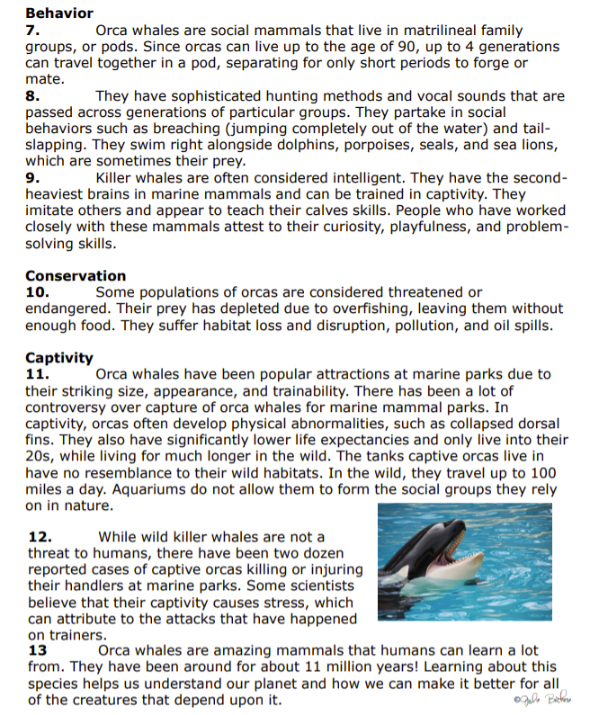 Which of the following from the text is NOT a strong supporting detail for why captivity is a danger to orcas?