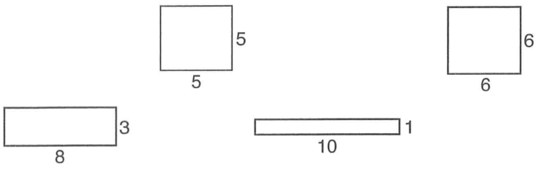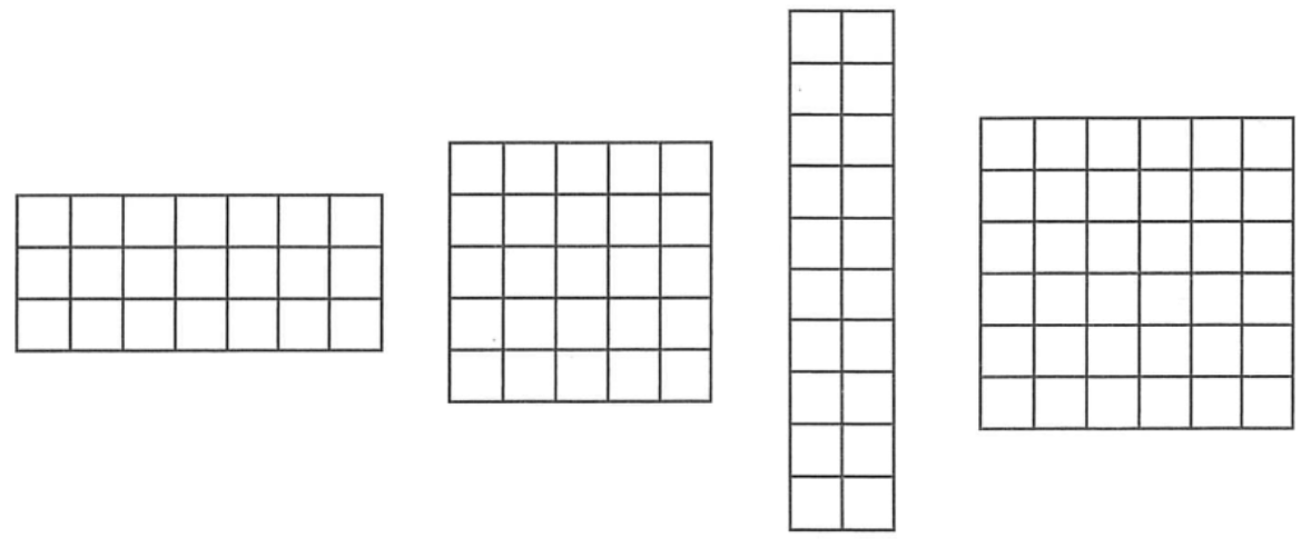 Nadia and her dad build a sidewalk by placing square blocks inside rectangular forms. To find the number of blocks needed for each rectangle, Nadia decides to find the area by filling in one of the rectangles with blocks, as shown.