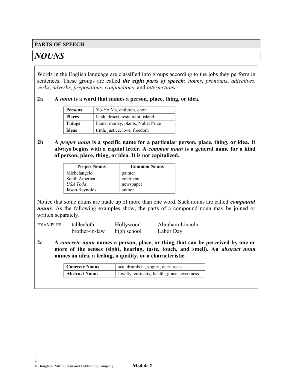 A _______ noun names a person, place, or thing that can be perceived by one or more of the senses.