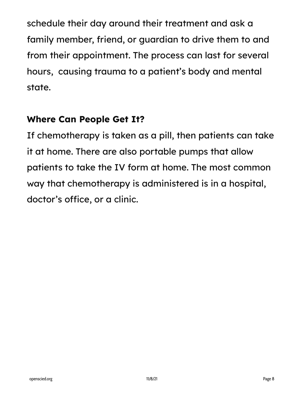 Chemotherapy drugs can be given by an IV, pills, or both