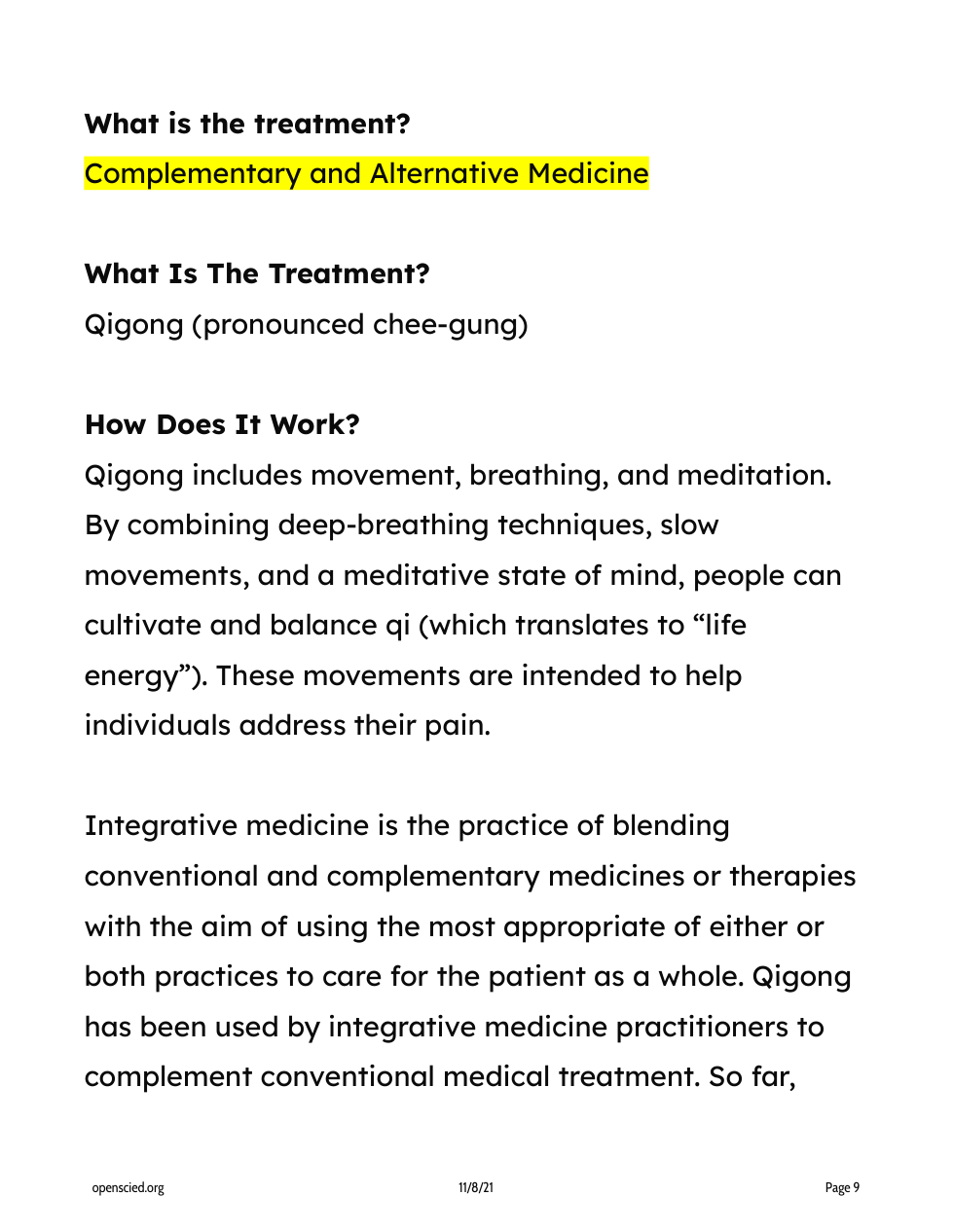 What does Qigong (alterative medicine) include?