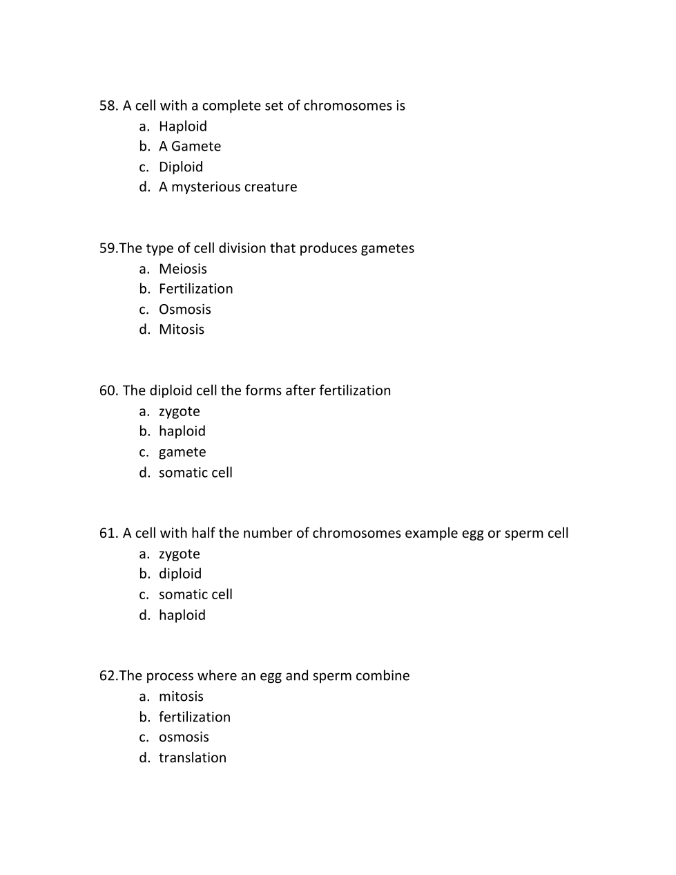 A starfish has 40 chromosomes. How many chromosomes would be in a starfish egg cell?