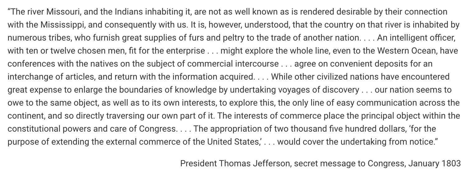The fulfillment of Jefferson’s proposal in the excerpt would be used to support which of the following executive acts?