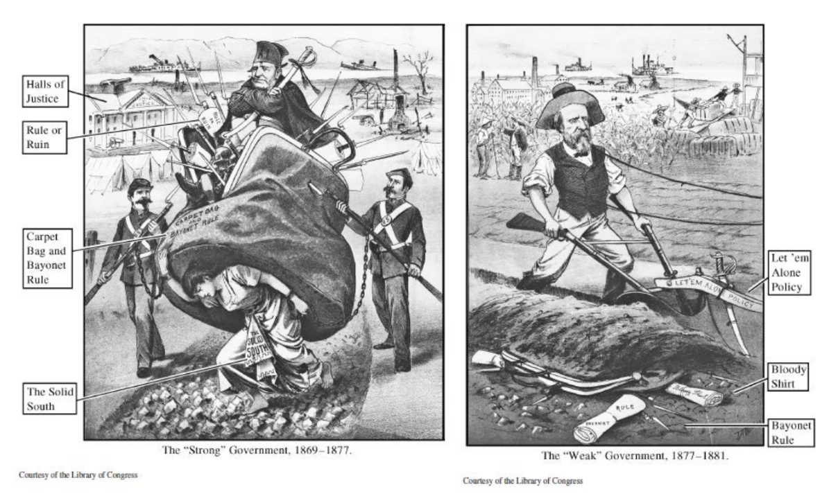 A) Briefly explain ONE historical perspective expressed by the artist about the changes from the period 1869– 1877 to the period 1877– 1881.