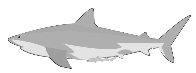 The shark and remora have a relationship that benefits the remora but neither helps nor harms the shark.