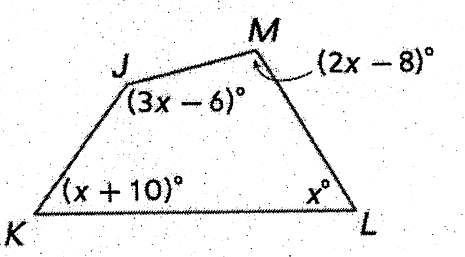 From the value of x that you had from the previous problem now find the measurement of angle K.