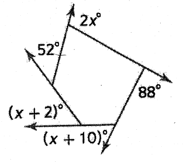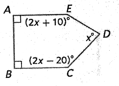 90°+(2x+10)°+x°+(2x-20)°+90°=540°