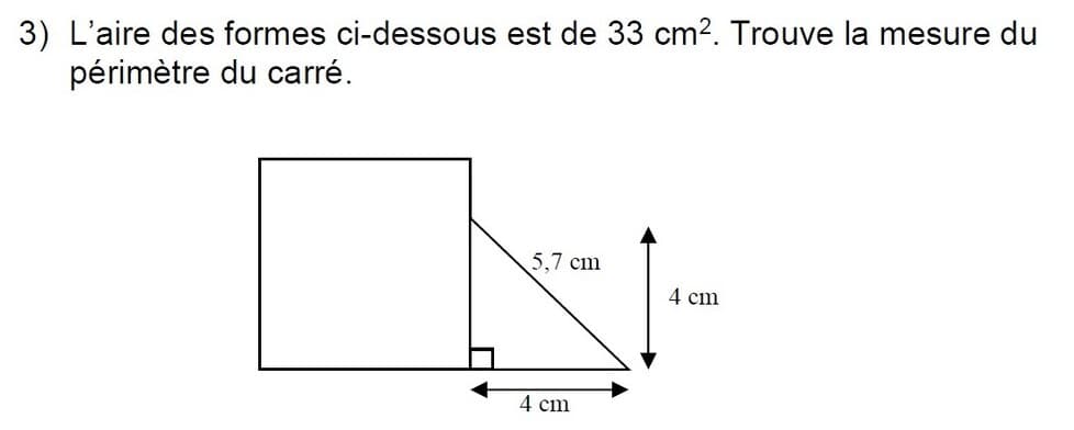 Si le périmètre d'un carré est de 305,2 dm, quelle est l'aire de ce carré ?
