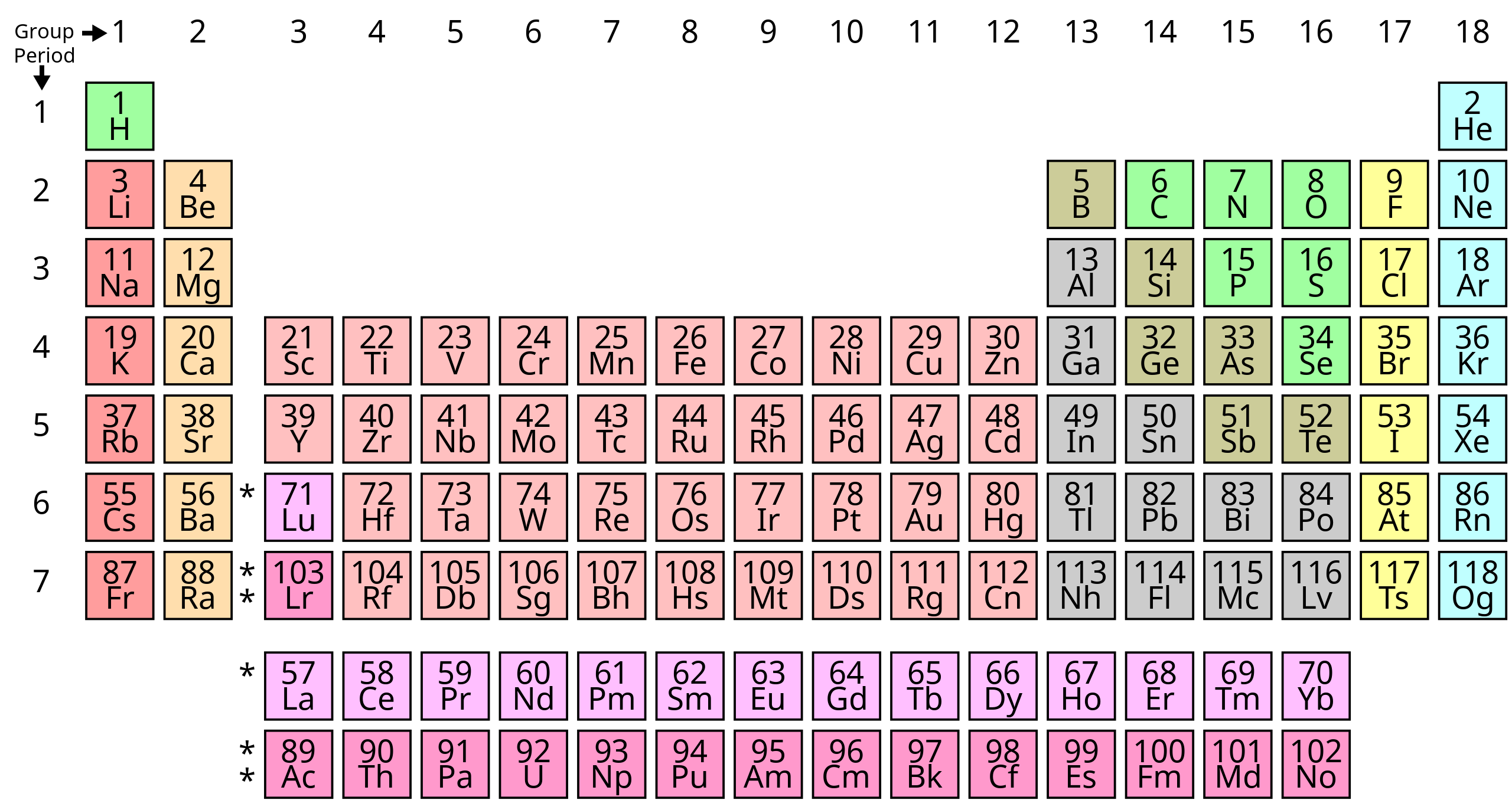 What is the purpose of using different colors for specific groups of elements on the periodic table? (What do I already know)
