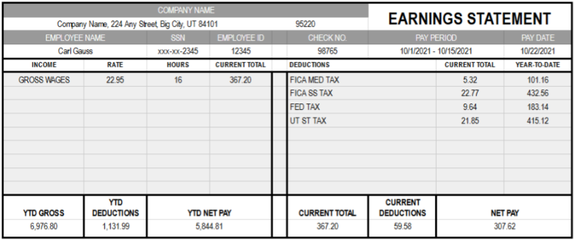 The second half of February is much busier with local schools closed for the entire week of Presidents Day, and Nolan’s boss schedules him for 27 hours instead. Other than payroll taxes, Nolan doesn’t have any other money withheld from his paycheck. How much can he expect his take-home pay to be? Note: Take-home pay is gross earnings minus any deductions.