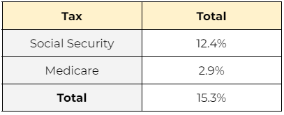 Payroll taxes are shared by traditional employees and their employers. Alternatively, if you are self-employed, which includes gig workers or those with a side hustle, you have to pay the employer’s portion as well as the employee’s portion. These taxes are then called Self-Employment Contributions Act (SECA) taxes, which are taxed at the rates shown below: