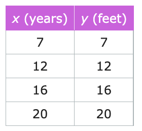 There is a proportional relationship between the age of Anita's apple tree (in years), x, and the height of the tree (in feet), y.