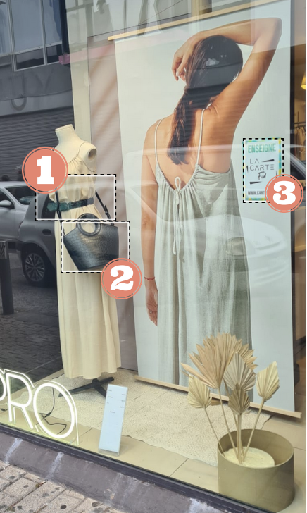 🛍️sur l'image ci dessus, dans quelle zone se trouve la vente complémentaire avec la robe?