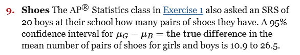 Does the confidence interval give convincing evidence of a difference in the true mean number of pairs of shoes for boys and girls at the school?