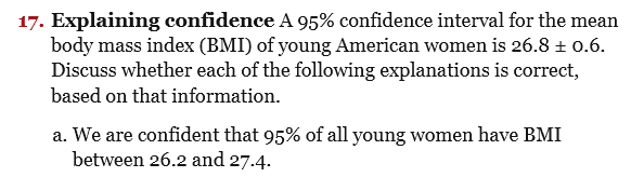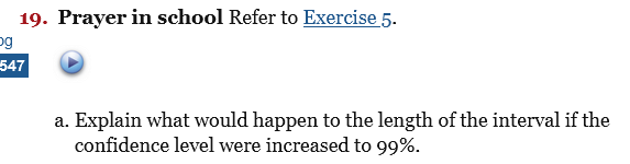 The link below will take you to an applet exploring confidence intervals. Use it to answer the next two questions.