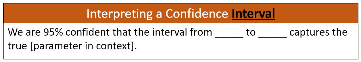 A counselor at a large high school wants to estimate the mean amount of sleep μ that students got the previous night. She selects a random sample of 10 students and asks them to record the number of hours they slept last night. Based on this sample, the confidence interval for the population mean amount of sleep for all students at the high school is (5.4, 7.8) hours.