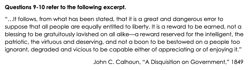 John C. Calhoun reveals here that many Southerners’ based their arguments in favor of slavery on