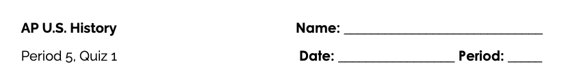 APUSH Period 5.1 (Ch. 16 & 18) Quiz - SY23