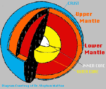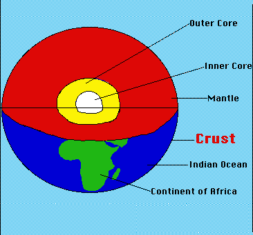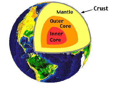 The Earth is composed of three different layers... The Crust - upper part of the Earth, the Mantle -middle layer of the Earth and the Core - the inner layer of the Earth