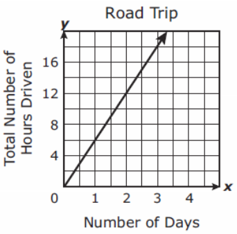 Frank and his family drove 6 hours every day during a road trip. Which graph best represents y, the total number of hours driven in x days?