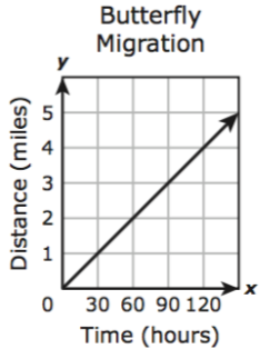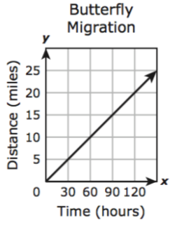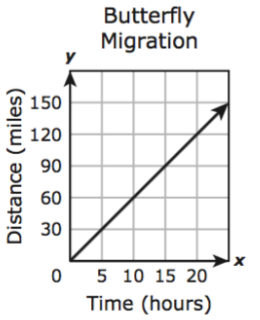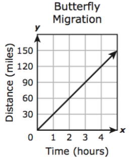 During migration, a butterfly can trael 30 miles in 1 hour. Which graph best represents y, the number of miles a butterfly can travel in x hours?