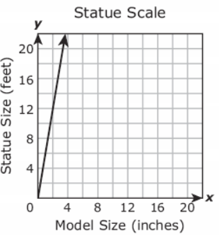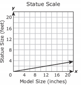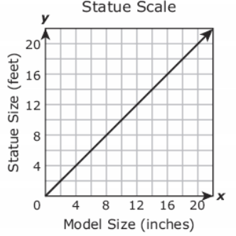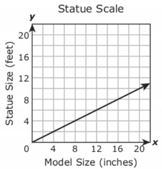 An artist is making a scale model of a statue. On the model 2 inches represents 1 foot on the actual statue. Which graph best represents this relationship?