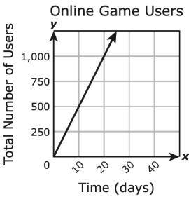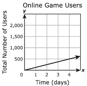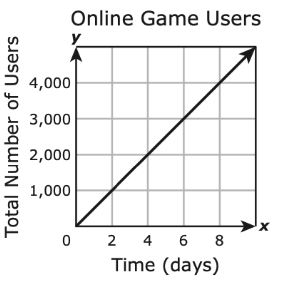 An online game increases in number of users at a rate of 500 users each day. Which graph best represents the relationship between y, the number of users, and x, the number of days?