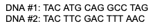 ¿Cuál de los siguientes representaría la hebra de ARNm que se haría durante la transcripción del ADN # 1 dado en el diagrama?