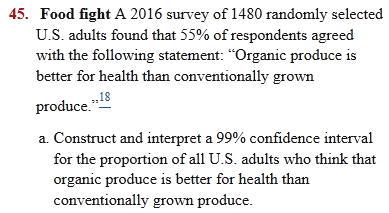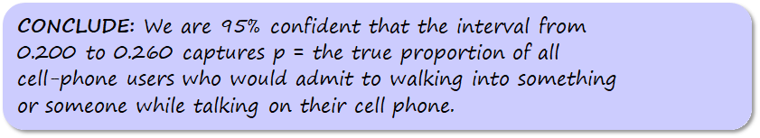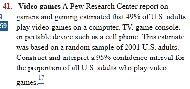 A recent study asked a random sample of 527 college-age adults (18–24 years old) about their plans for purchasing a new computer. Of the sample, 105 said that they planned to purchase a Mac computer within the next year. Construct and interpret a 95% confidence interval for the proportion of all college-age adults who plan to purchase a Mac computer within the next year.