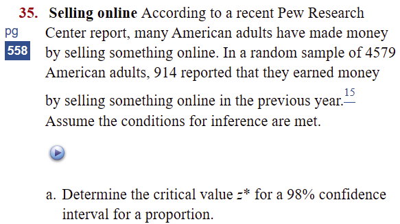 (a) Determine the critical value z* for a 80% confidence interval for a proportion.
