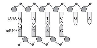 The diagram below shows a strand of DNA matched to a strand of messenger (mRNA).Â