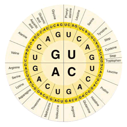 Which diagram shows how RNA is read to produce an amino acid chain?