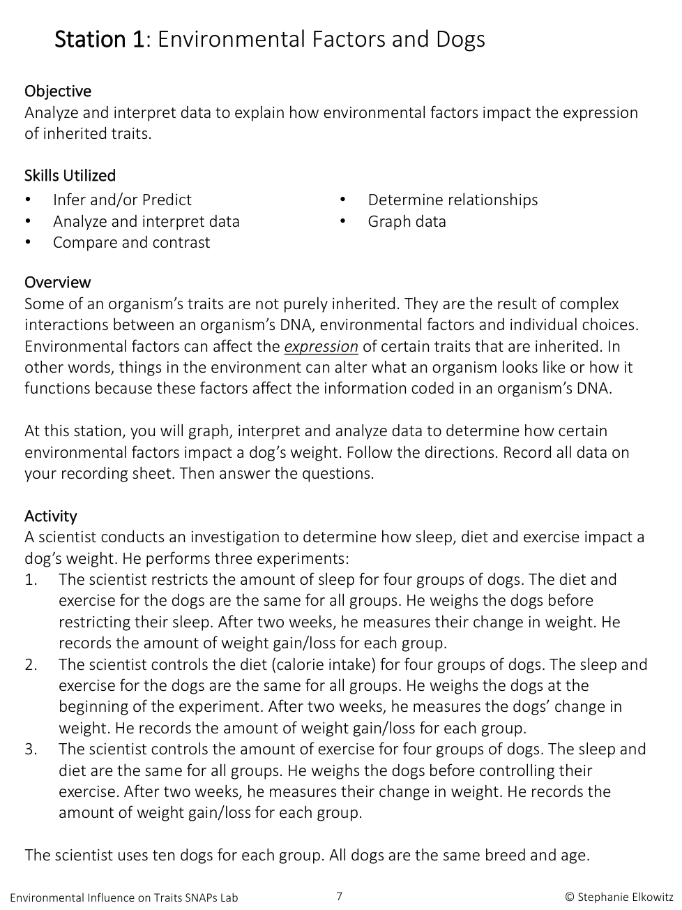 A scientist wants to investigate how sleep, diet and exercise impacts a dog's weight. Should the scientist use dogs that are the same age and breed?