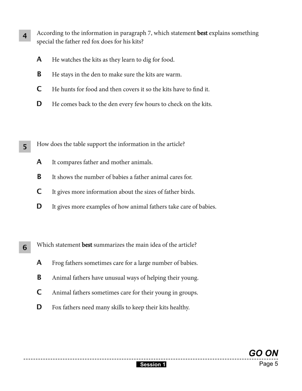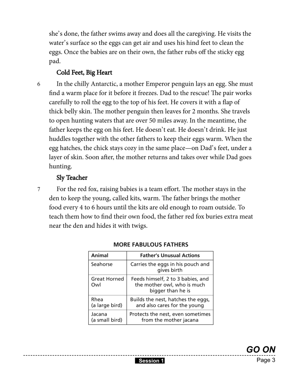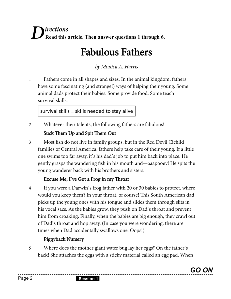 Reading Comprehension "Fabulous Fathers" - New York State Fourth Grade ELA 2022