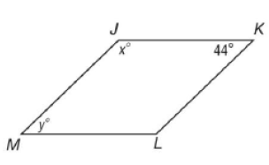 Remember that in a parallelogram that consecutive (in order) angles are supplementary.