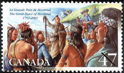 En quelle année le traité de la Grande Paix de Montréal est-il signé ?Regarde bien le timbre.