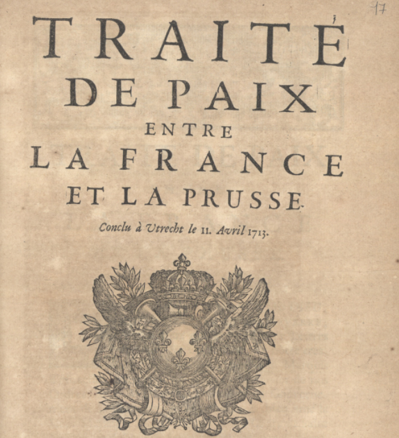 Quel est le nom du territoire français (encadré sur la carte) qui est cédé (donné) au royaume britannique avec le traité d'Utrecht ?